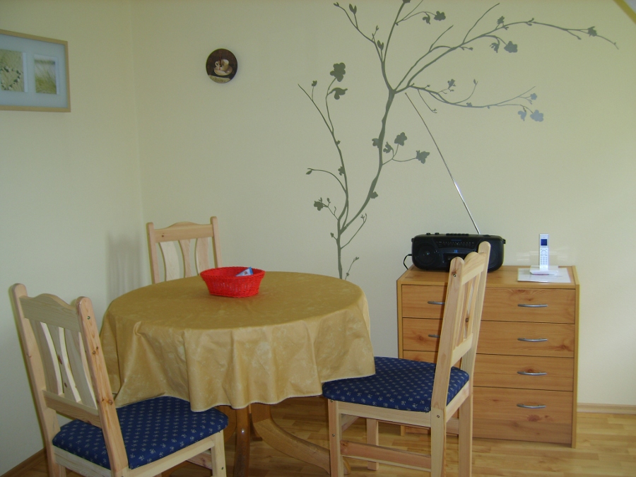 Die Wohnung 2 befindet sich im Obergeschoß und verfügt über ein Schlafzimmer, ein Wohnzimmer (mit Schlafcouch) und eine Küche mit Vollausstattung inkl. Geschirrspüler sowie WC/Dusche. Die Ferienwohnung ist ausgestattet mit WLAN, Sat.-TV und Radio.